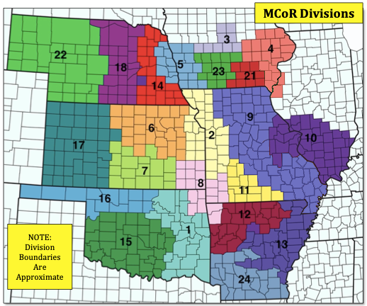 NMRA is divided into Regions and Divisions. We are part of the Mid-Continent Region referred to as MCoR. NE, KS, OK, AR, MO, Southern IA, & portions of Illinois) make up MCoR. Regional information and links to other divisions are available at MCoR’s website at https://www.mcor-nmra.org/.